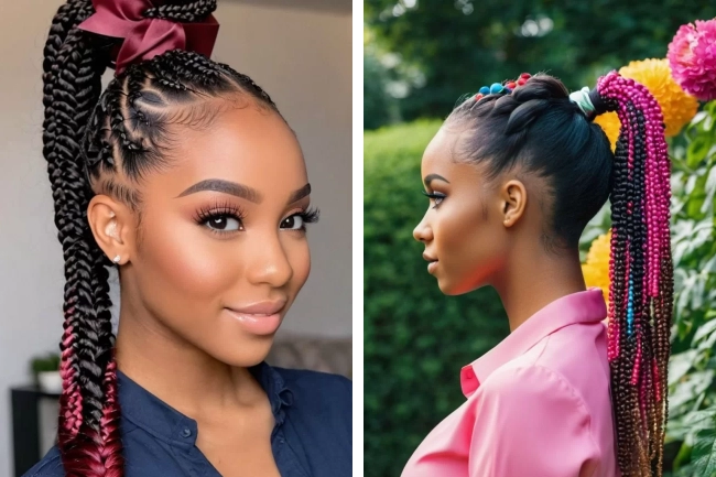 Enhance your ponytail with braids adorned with colorful beads. This playful and vibrant style adds a fun element to your look while protecting your hair.